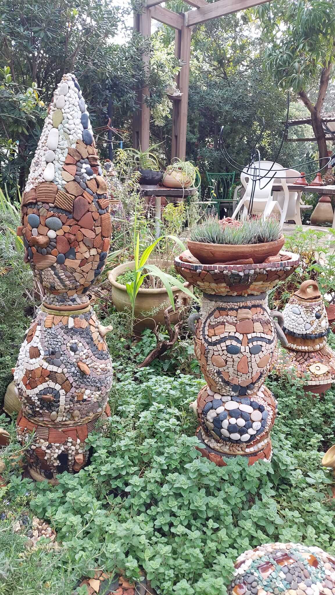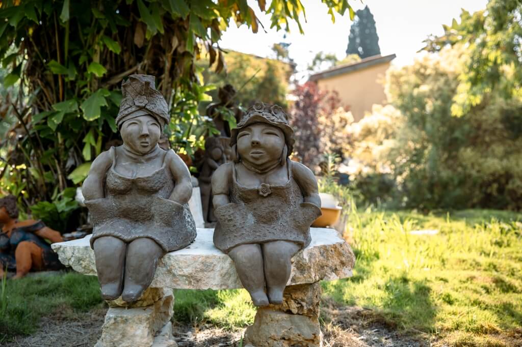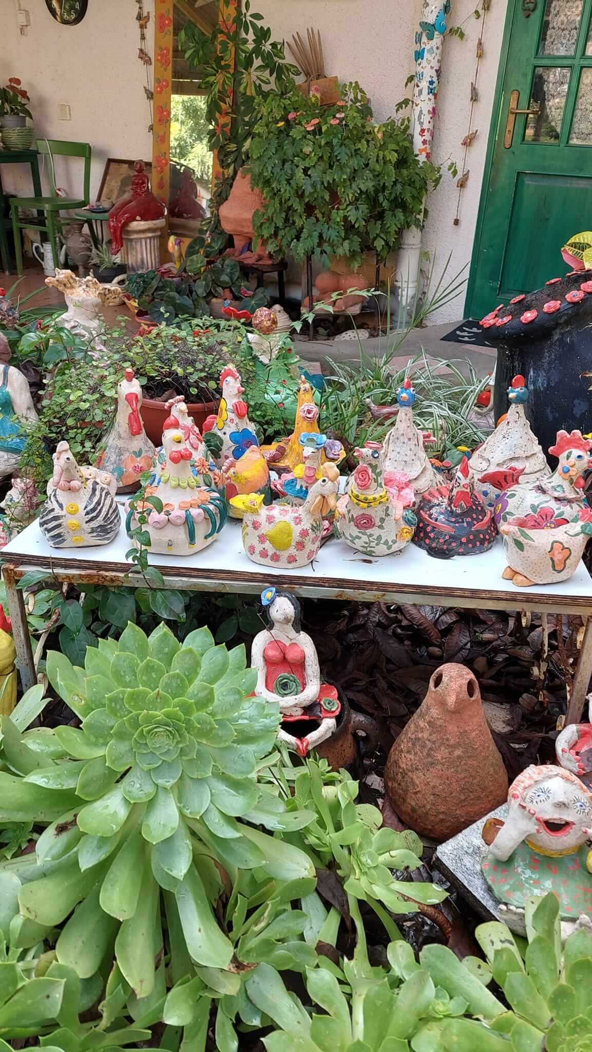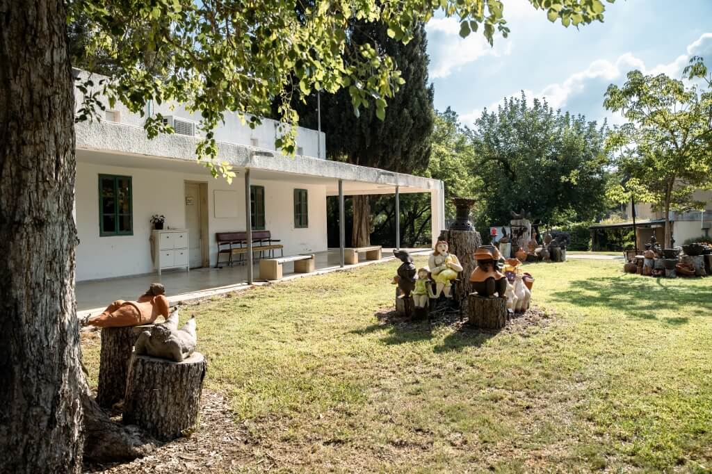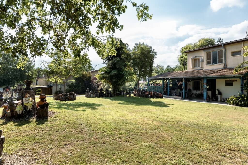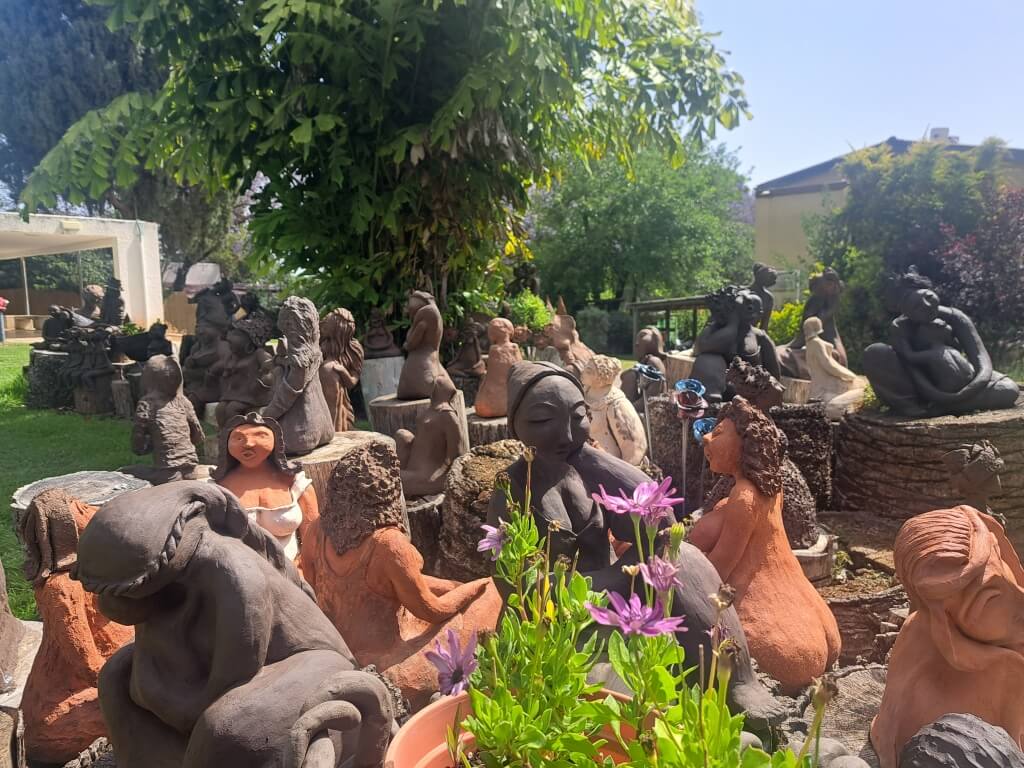 חצר ביתם של משפחת כוכבא משלבת בין דשא ירוק ומטופח ומגוון רב של פסלי קרמיקה פרי יצירתה של הקרמיקאית רותי כוכבא.