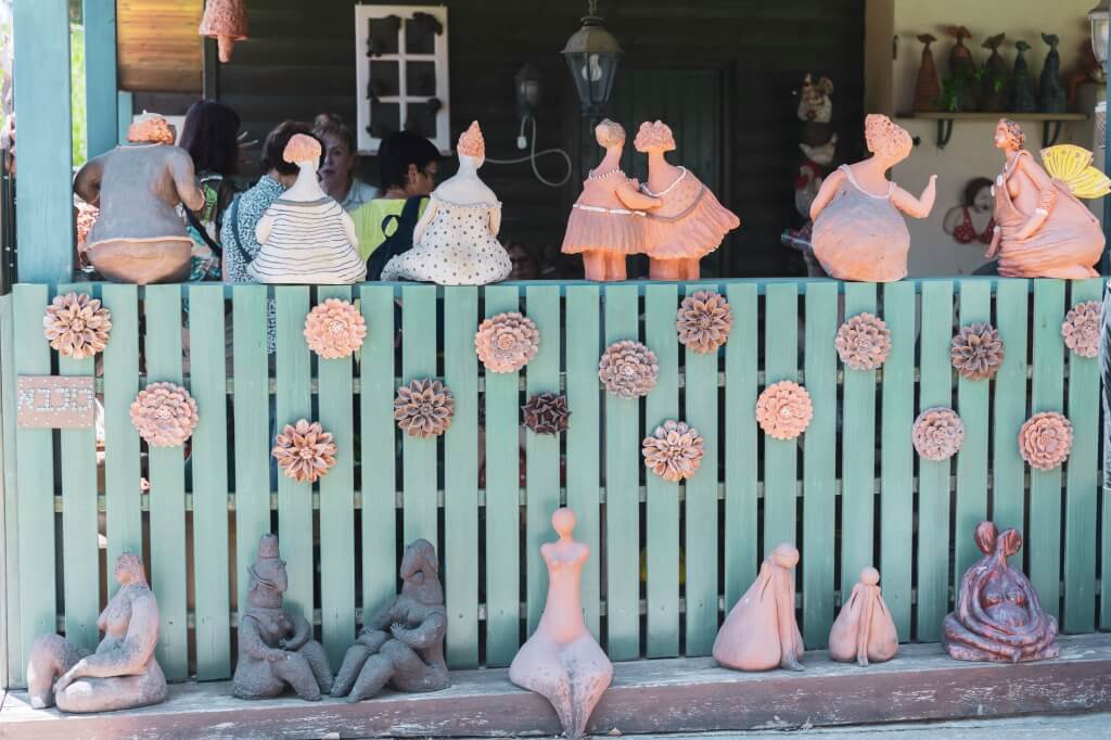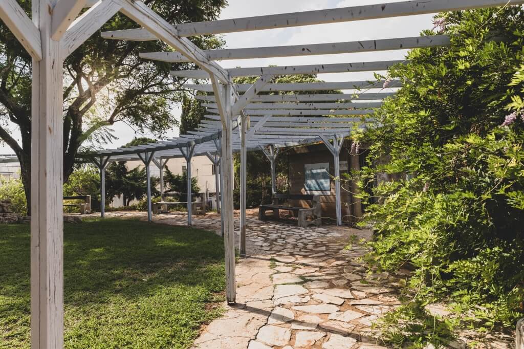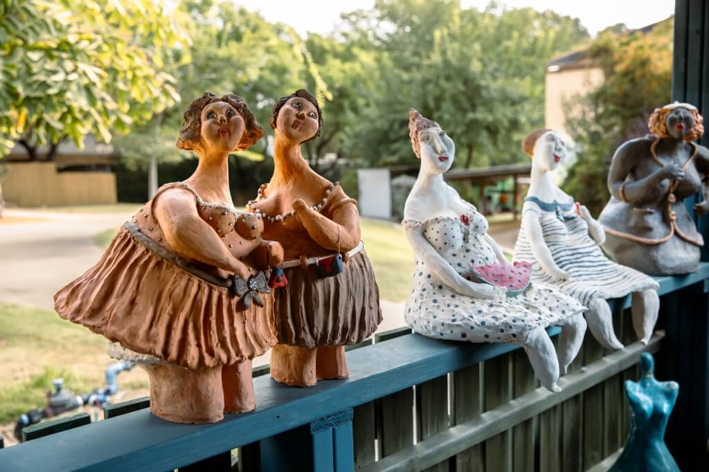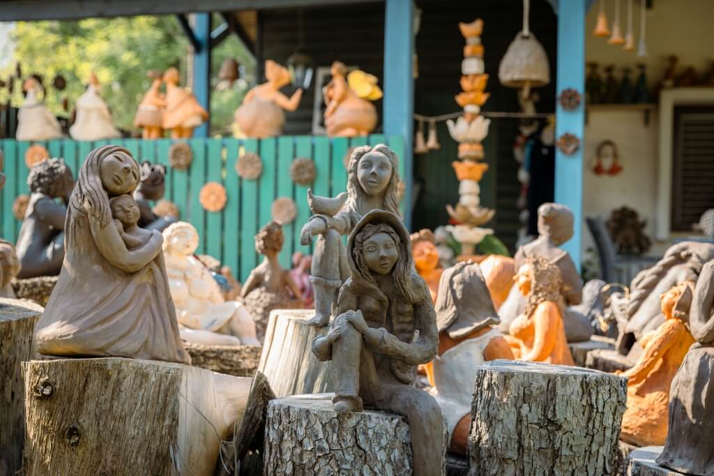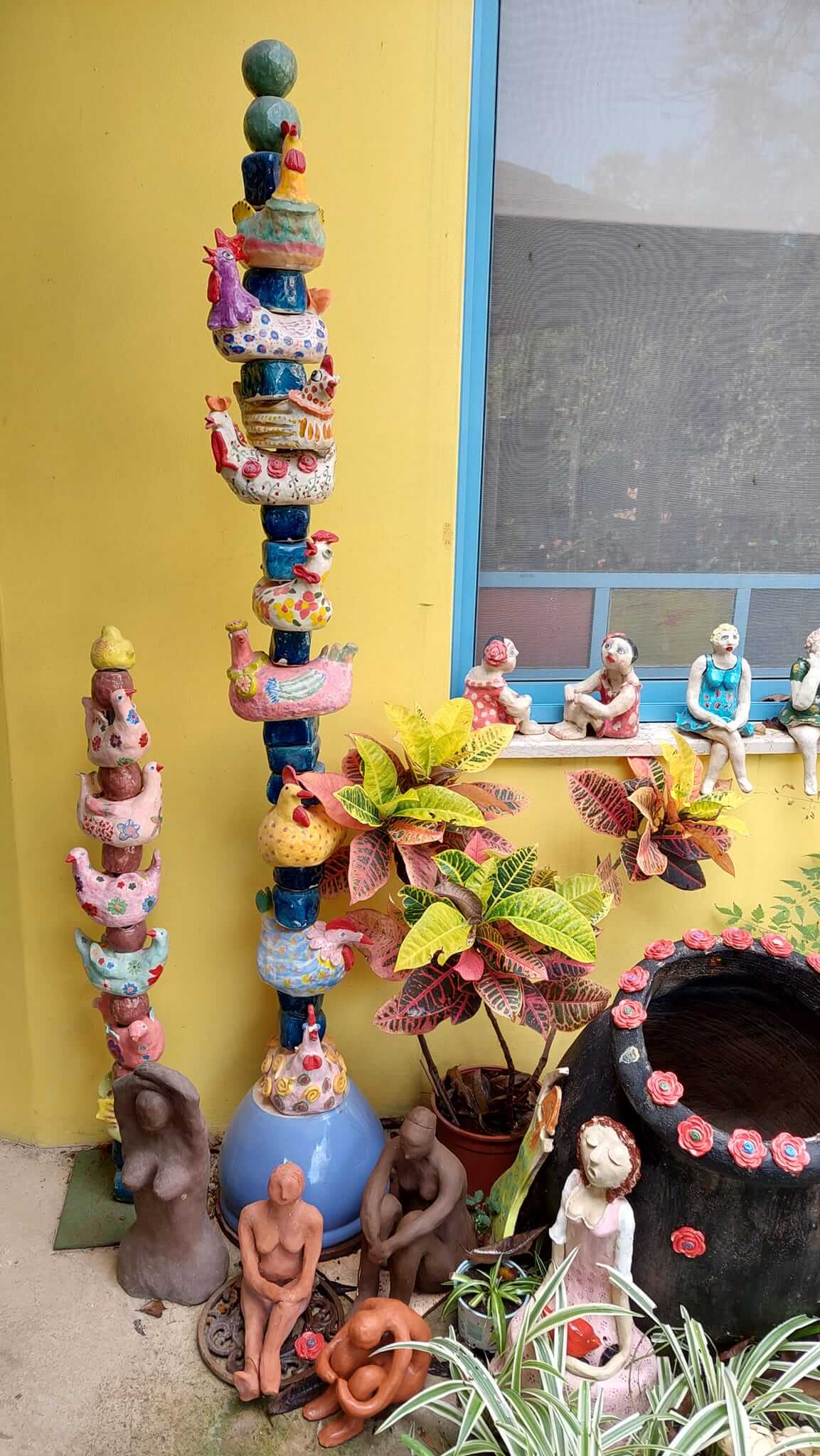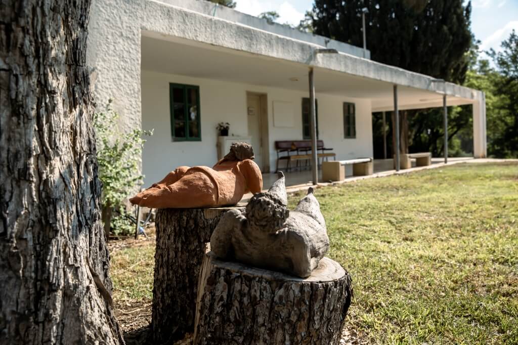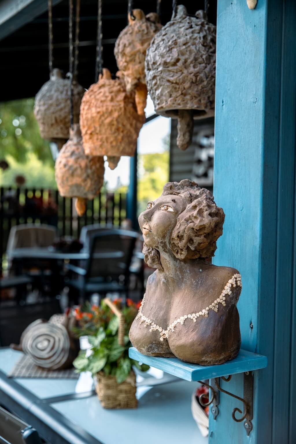 חצר ביתם של משפחת כוכבא משלבת בין דשא ירוק ומטופח ומגוון רב של פסלי קרמיקה פרי יצירתה של הקרמיקאית רותי כוכבא.